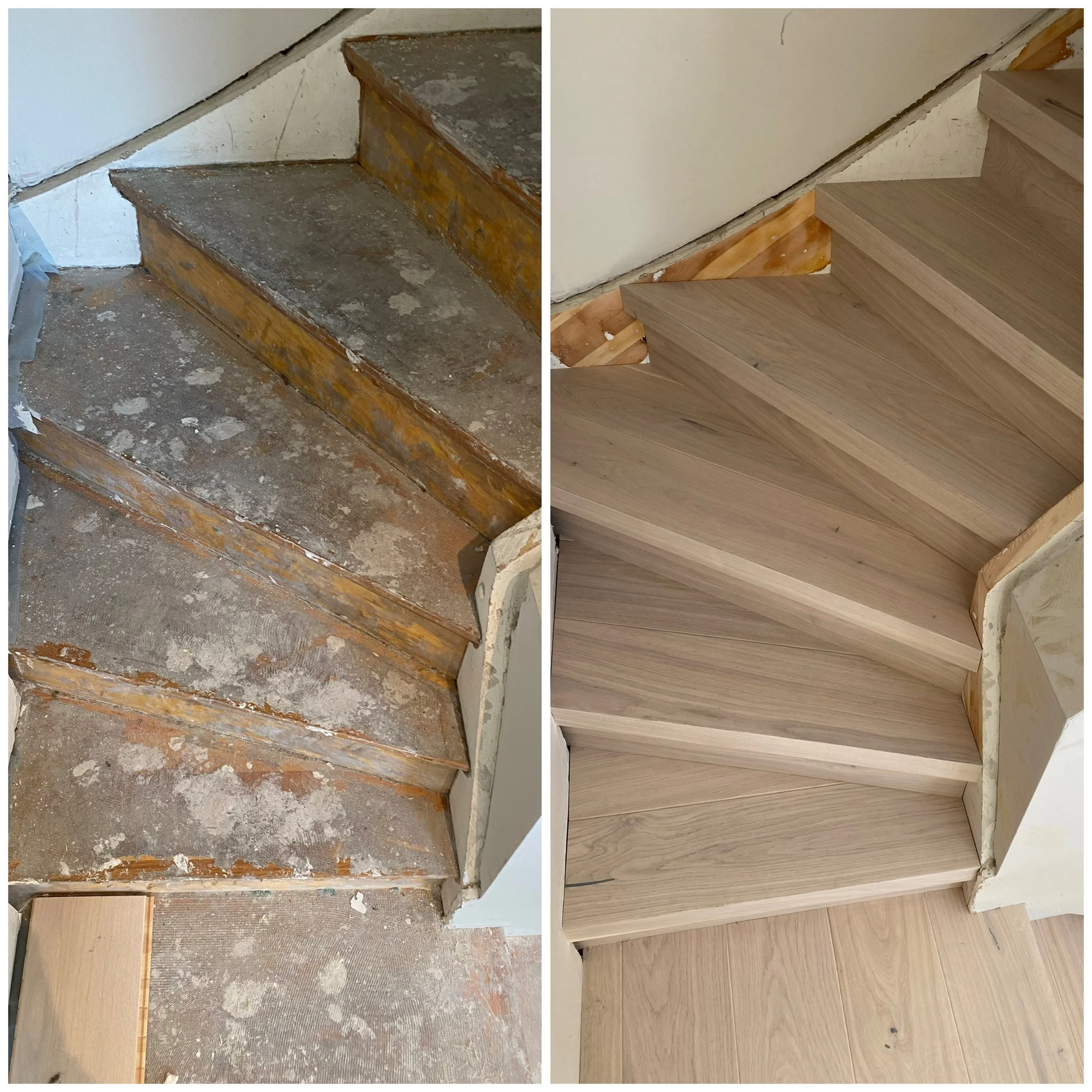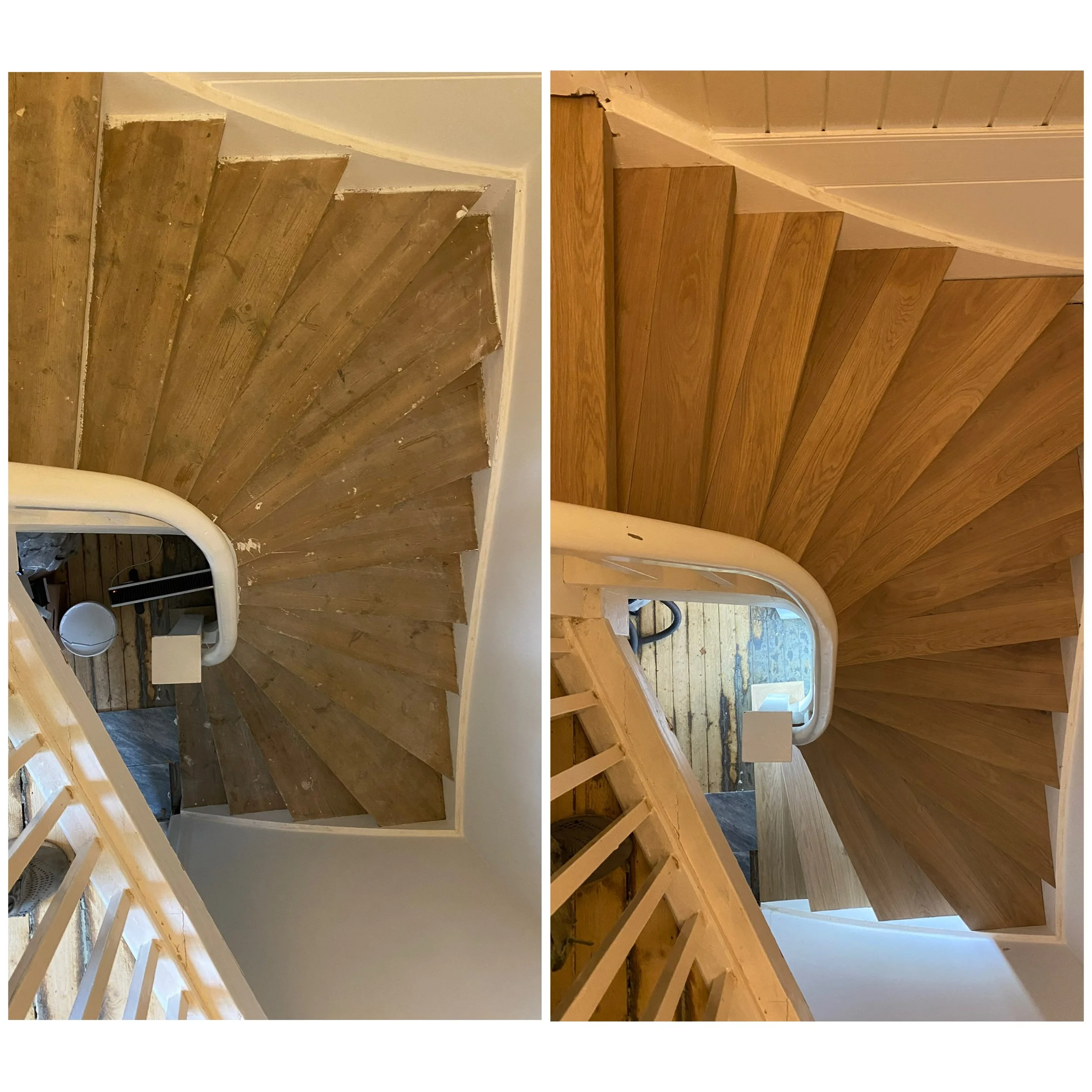 HELLIMT PLANKEGULV OG LAGT PARKETT I TRAPP