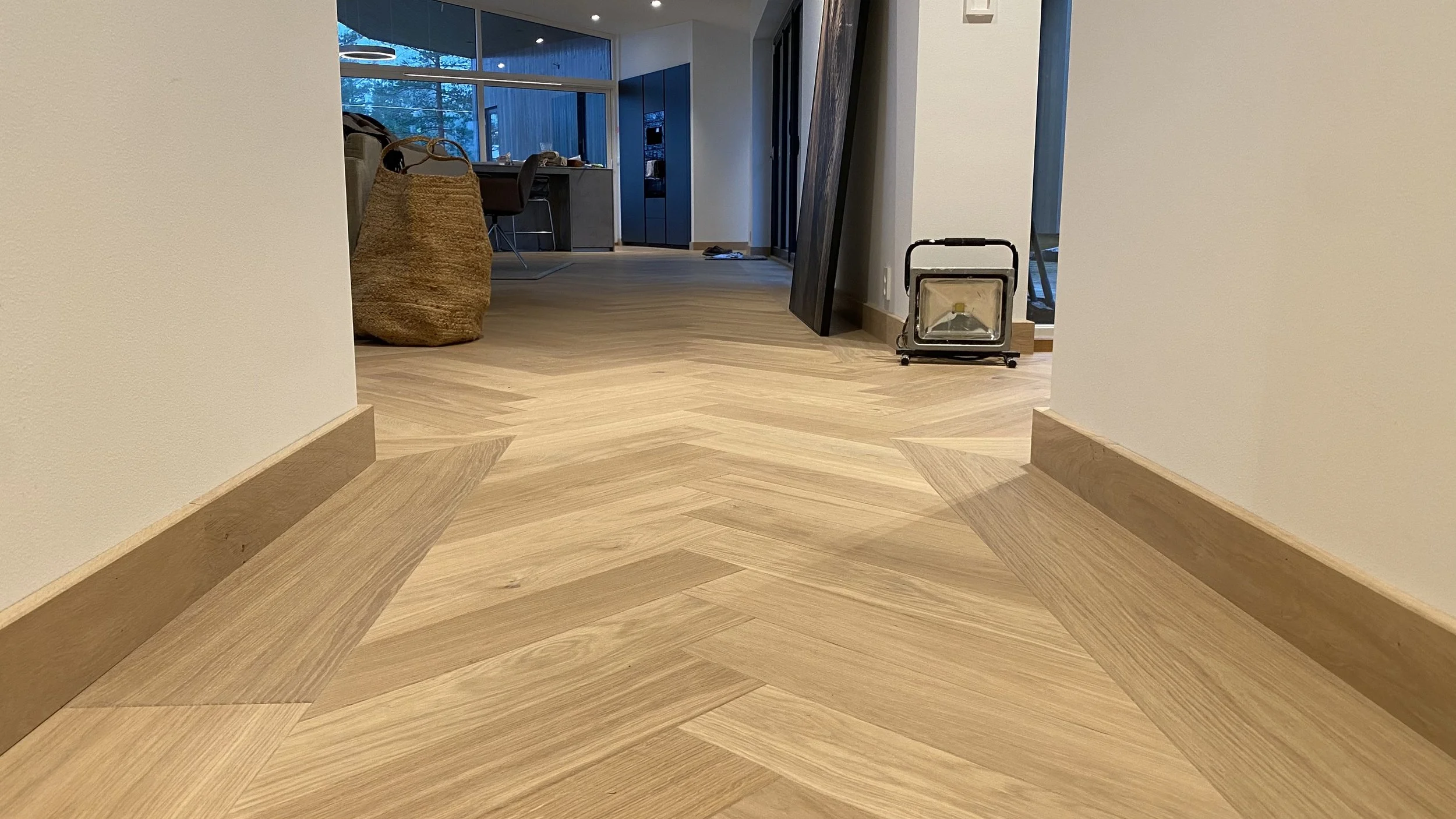 KLASSISK HELTRE FISKENBENSGULV I EIK